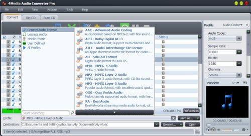 Is there anything can content all my needs? Yes, a program named 4Media Audio Converter comes into my sight, and it’s likely to deal with all my problems – a CD Converter, an audio converter, and a CD maker! And there are more details as below: