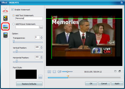 3. Click "Restore Defaults" button to restore the watermark settings to default.