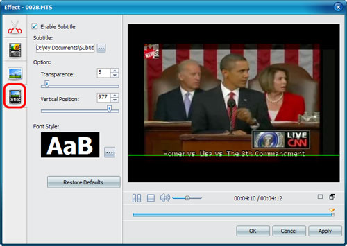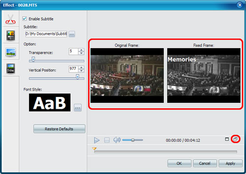 2. If you don't want to apply the subtitle settings to the video, then uncheck "Enable Subtitle" option.
