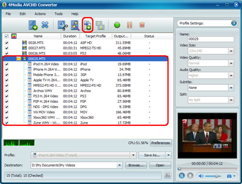 4Media AVCHD Converter converts AVCHD video files to almost all HD/SD videos suitable for different multimedia devices. This step-by-step guide will show you how to convert video files with this software.