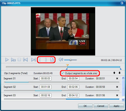 Step 2: Click "Play" button to play the video file. When it comes to the point you want, click "Set Start Point" button to set it as the start point and set end point in the same way, then the segment you want will be displayed in the segment list below.