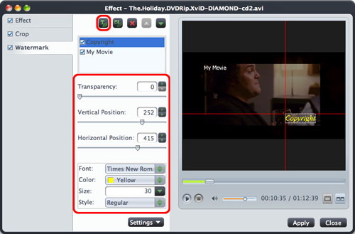 Step 2: To add a text watermark, click the "Add Text Watermark" button near the top of the window, and input the content of text watermark. You can also adjust various settings for your text watermark from there.