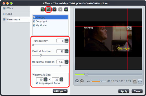 To add a picture watermark, click the "Add Picture Watermark" button, and locate a picture from your Mac as your picture watermark in the dialog that opens. You can also adjust various settings for your picture watermark.