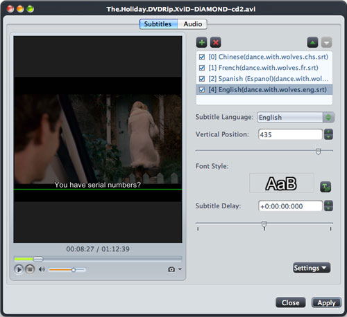 Step 2: Select a subtitle from the Subtitle List, and then choose a language from the "Subtitle Language" drop-down list. You can also adjust the vertical position and the font style of the subtitle accordingly.