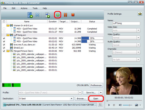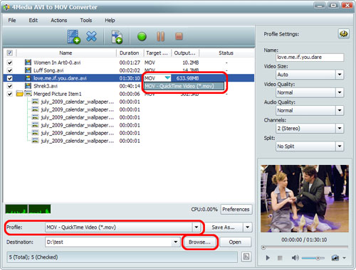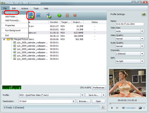 The following guide will show you how to convert AVI to MOV video with 4Media AVI to MOV Converter step by step.