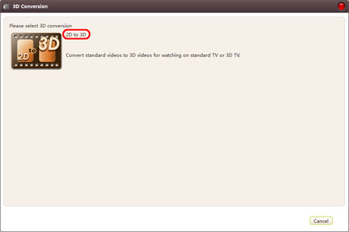 Choose the file you want to convert in the file list, and Click 3D Conversion button on the toolbar to enter 3D Conversion window.
