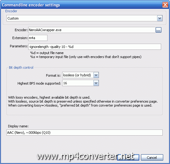 Display name:AAC (Nero), ~300kbps (Q10)