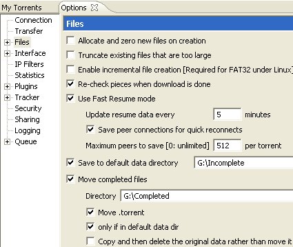 Bear in mind two important things you need to configure in Azureus. Choose"Tools->Options". Check the box next to "Save to default data directory". Select a directory where you want to save your files. Check the box next to "Move completed files". Then choose a directory to save your TV shows. Click "Save".Then we have finished the configuration.