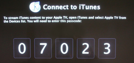 Apple TV gives you a code to hook up to iTunes