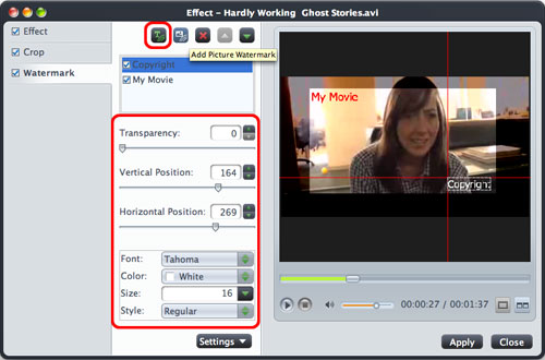 To add a picture watermark, click the "Add Picture Watermark" button, and locate a picture from your Mac as your picture watermark in the dialog that opens. You can also adjust various settings for your picture watermark.