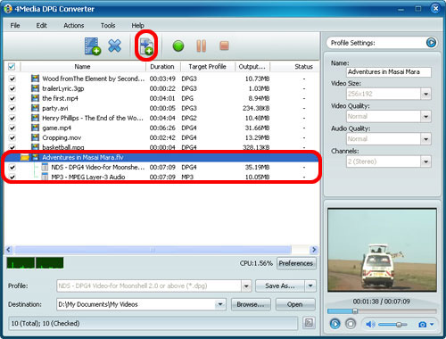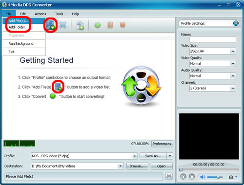 4Media DPG Converter can convert almost all video and audio formats to DPG/DPG2/DPG3/DPG4 videos or MP3/MP2 audios for playback on Nintendo DS. The following guide will show you how to complete the video to DPG conversion step by step.