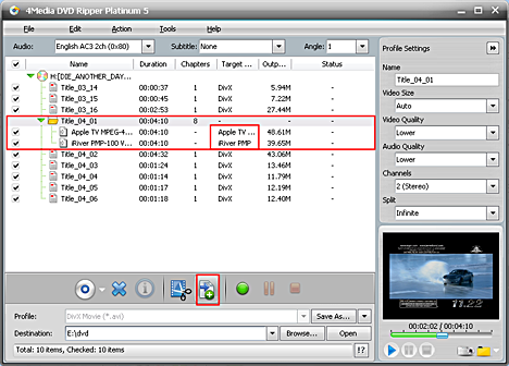 4Media DVD to Video Ultimate provides video clipping function, which allows you to choose the segments you like from the source video, and add them to the file list.