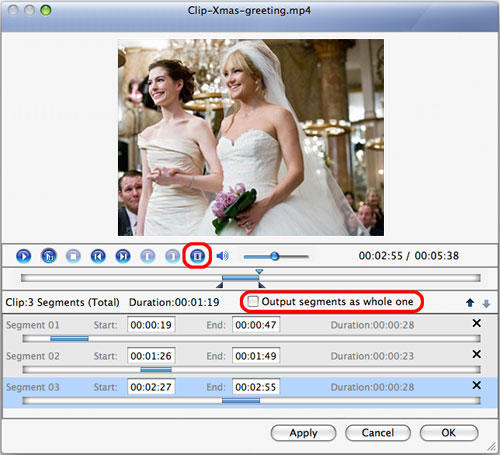 Play the file and set the start & end point you want to create segment in the segment list. If you want to get more segments, click "New Clip" button and repeat the above steps.