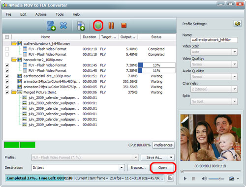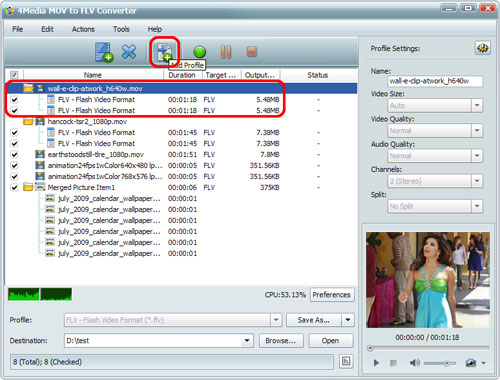 The following guide will show you how to convert MOV to FLV video with 4Media MOV to FLV Converter step by step.