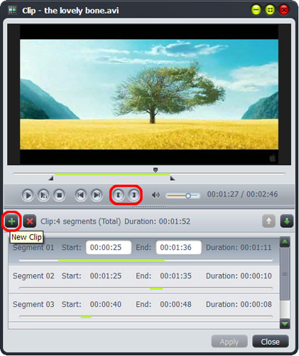 4. Click "Apply" and "Close" button. The clips will appear in the videos pane.