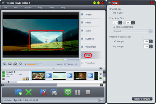 3. Alternatively, adjust the parameters including Crop Area Size, Position of Crop Area.