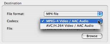 Note:A previous version of this guide suggested using the “H.264/AVC Video” codec, but that does not work because the video iPod can not play the H.264/AVC files that Handbrake produces. I have first-hand reports that the MPEG-4 Video codec works correctly. As an added bonus, MPEG-4 encoding is much faster.