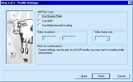The last step in setting up the video end of the conversion is to setup the DivX codec: