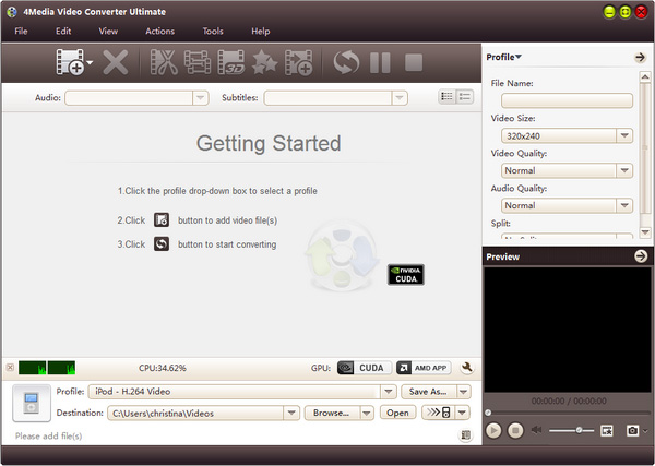 How to convert video files using this video converter? The following will show you a step-by-step guide to complete conversion tasks. 4Media Video Converter can convert all SD/HD/3D videos, and audios. It can convert videos to be playable on wide range of digital devices including iPad, iPod, iPhone 4, iPhone 4S, Apple TV, PSP, PS3, Zune, smart Phones and any other portable multimedia devices.