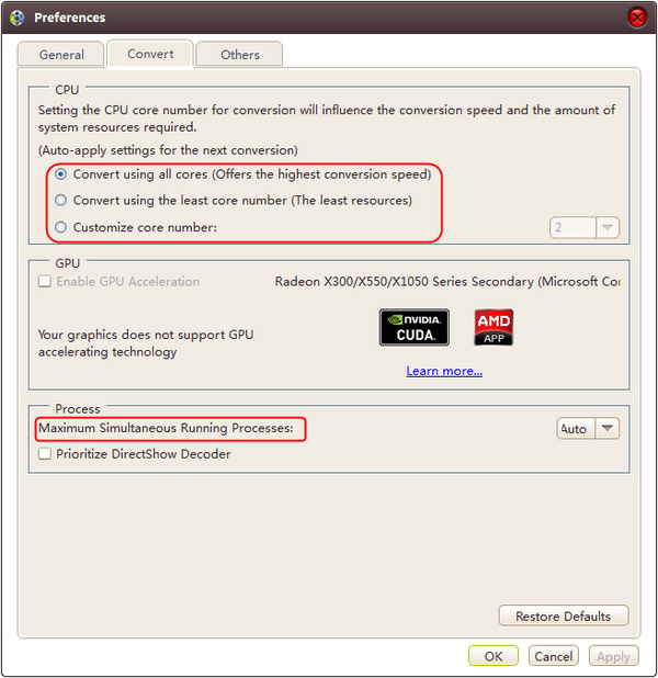Firstly, click Tools >Preferences to set various parameters such as amount of running processed, action "After Done" and etc.