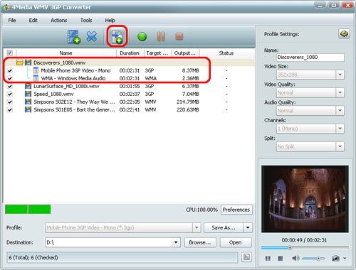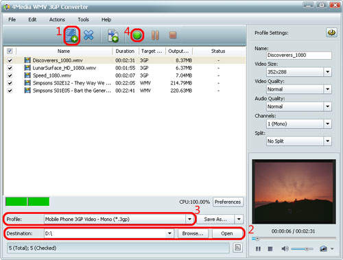 Current Page: Home > Guide > 4Media WMV 3GP Converter Guide