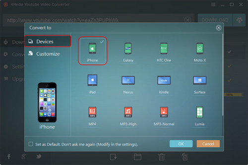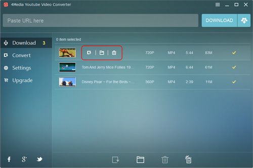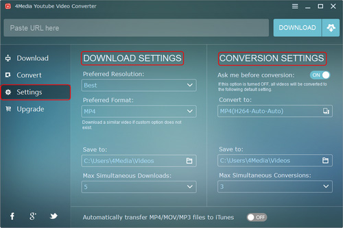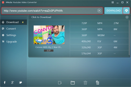 4Media YouTube Video Converter helps you download YouTube videos at ease. It offers two ways to download the YouTube videos: direct download and custom download. With the direct download, you can download YouTube videos with preferred settings, while with the custom download, you can choose the resolution and format as you want to download. After the download is complete, you can convert the videos to other video/audio formats or some devices.