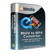 4Media MOV to MP4 Converter is a powerful video converter to convert QuickTime MOV to MP4 and MPEG-4 AVC video so that you can easily enjoy the QuickTime MOV video on MP4 players.