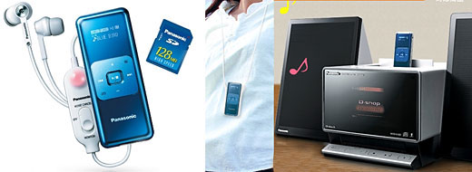 Panasonic announced D-Snap, a noise-canceling digital audio player that lets you listen to high-quality sound without having to overcome ambient noise levels with high volume. Music is stored on a removable SD card rather than a hard disc or internal flash memory, probably a good decision given the plummeting prices of SD memory.