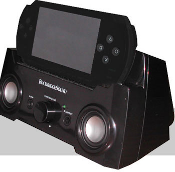 Joy to the world, another dock. This time it's not the iPod dock, but for Sony PSP. From RockRidgeSound comes the PST-02 Sound Terminal, a PSP dock that tries to make us believe that 2.1-channel stereo sound is some sort of major scientific breakthrough. The PSP dock, which will be available in both black and white, features a 2.75-inch subwoofer to drop all those low frequency, hip hop beats. Word.
