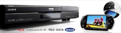 Sony has newly released three new HDD/DVD recorders, RDZ-D97A, RDZ-77A, RDZ-87 to their RDZ series. The new RDZ-D97A(pictured) is of 400GB storage capacity and 77A of 250GB. These HDD/DVD recorders feature digital Hi-Vision (1080i HDTV in Japan) tuner and two-analog tuners which enable you to simutaneously record three teeveelicious broadcasts. They also enable you to record directly to your PSP to take your recordings.