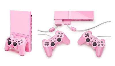 Sony has answered every [UK] boy and girl's wish just in time for the holidays with the announced release of a pink-colored version of its PlayStation 2 console. Destined to be a hit amongst the Chelsea crowd, this pink PlayStation 2 will also come bundled with a pink controller, a pink memory card as well as with the totally masculine game Singstar Pop. With the pink PlayStation 2, Sony is playing catch-up with other companies that long ago realized that the way to reach out to the female market is to paint every product pink.