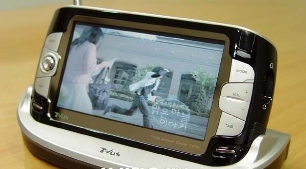 PMP Tvus has a 4.3'' display, T-DMB receiver, supports various multimedia files like WMV as well as AVI(DivX, XviD, MPEG). At the same time it can record DMB programme and has image/text receiver. This PMP has Windows CE for O/S.