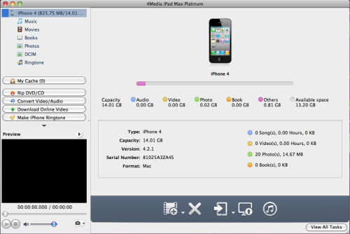 Firstly, free download 4Media iPad Max Platinum for Mac. Install it on your computer and start the software. OK, here we go.