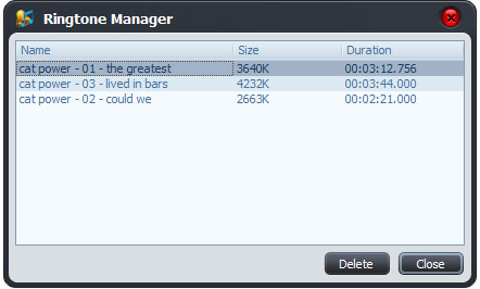 Also, you can click "Ringtone Manager" button to manage all the ringtones you uploaded to iPhone in the "Ringtone Manager" dialog.