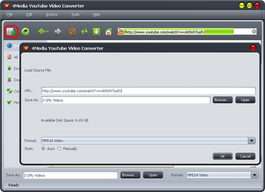 Method 2. Drop the video URL to software windowJust drag and drop the YouTube video URL directly to 4Media YouTube Video Converter to create a New Download task as method 1.