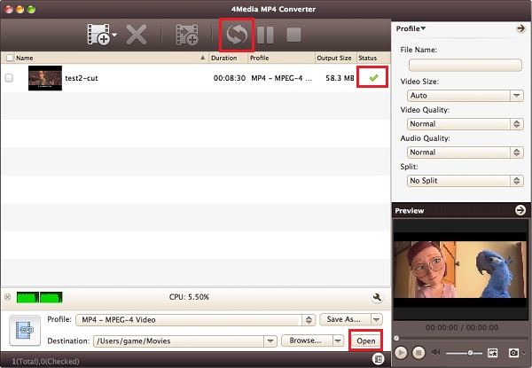 And after conversion, you can just click the "Open" button to check the converted MP4 files. As professional Mac MP4 converter, 4Media MP4 Converter for Mac is surely best solution to convert MP4 videos on Mac computer.